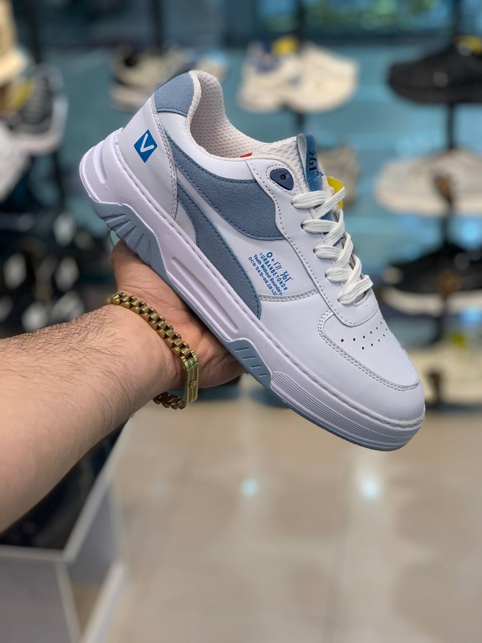 - ونس مردانه چرمی ۳۶۱ بندی رنگ(سفید،سورمهایی)کد ۱۱۸۲